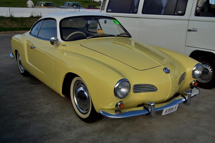 The Volkswagen Karmann Ghia is a sports car marketed in 2+2 coupe (1955–1974) and 2+2 convertible (1957–1974) body styles by Volkswagen. Internally designated the Typ 14, the Karmann Ghia combined the chassis and mechanicals of the Type 1 (Beetle) with styling by Italy's Carrozzeria Ghia and hand-built bodywork by German coachbuilding house, Karmann.